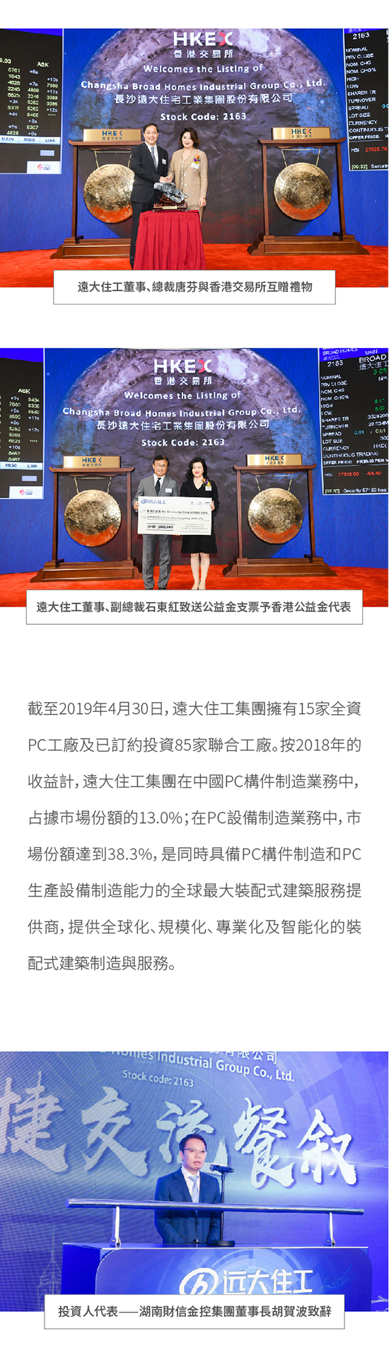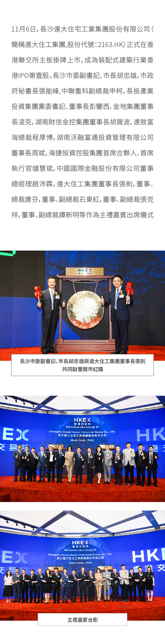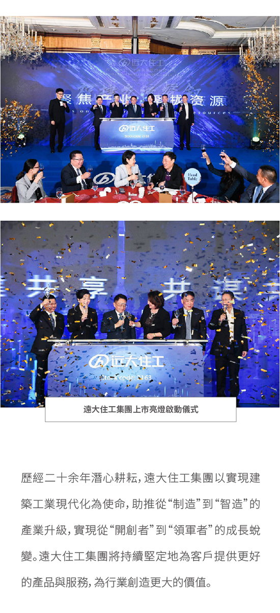 遠大住工集團今日成功在香港掛牌上市