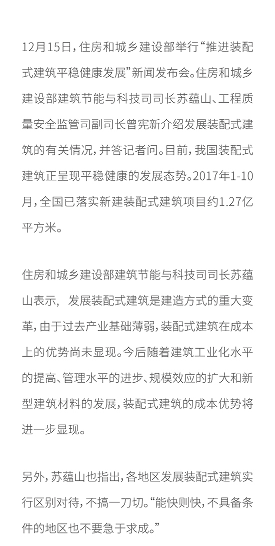 住建部:發展裝配式建筑不搞"一刀切" 成本優勢將逐步顯現