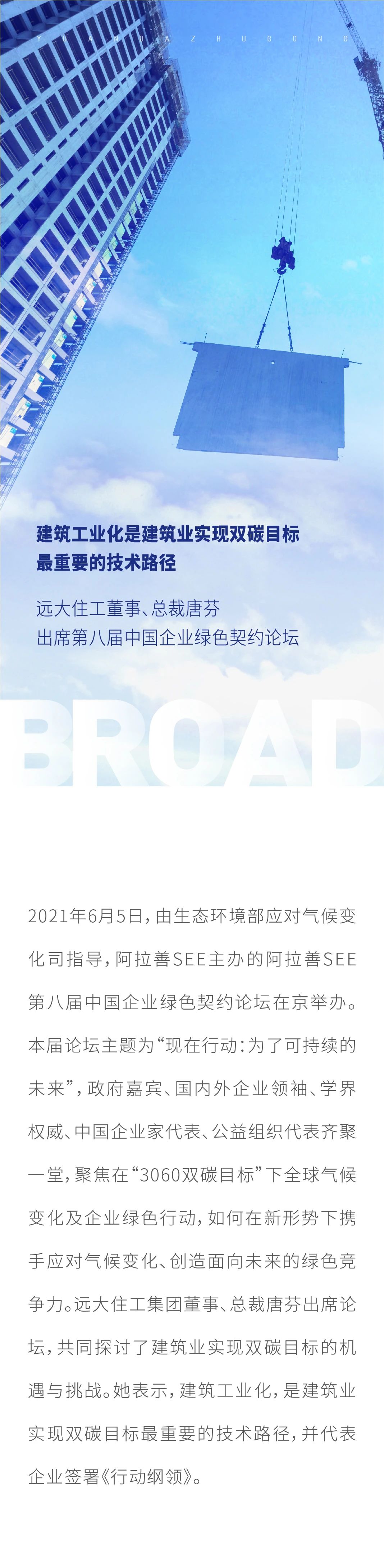 建筑工業化是建筑業實現雙碳目標最重要的技術路徑 遠大住工董事、總裁唐芬出席第八屆中國企業綠色契約論壇