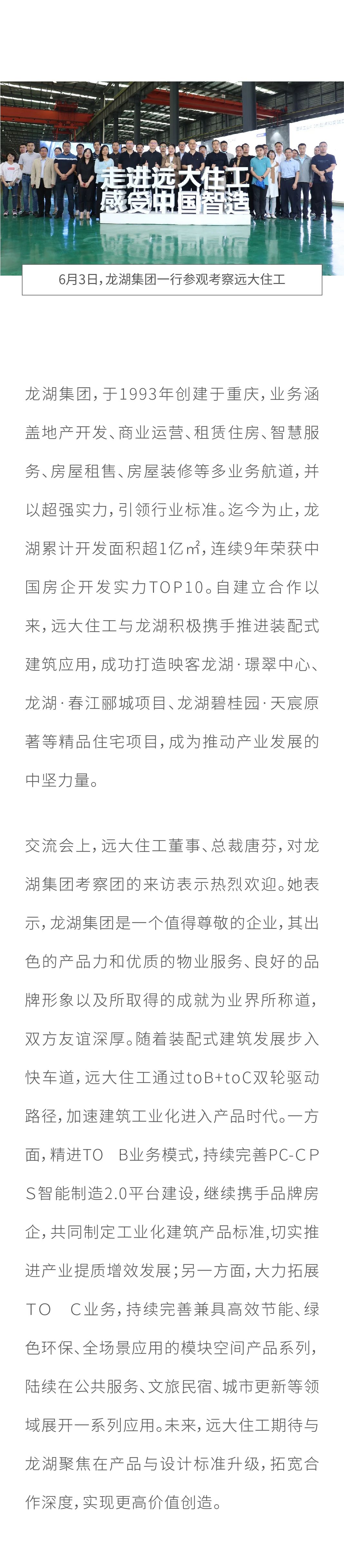 共話合作 共謀發展 龍湖集團一行赴遠大住工參觀考察