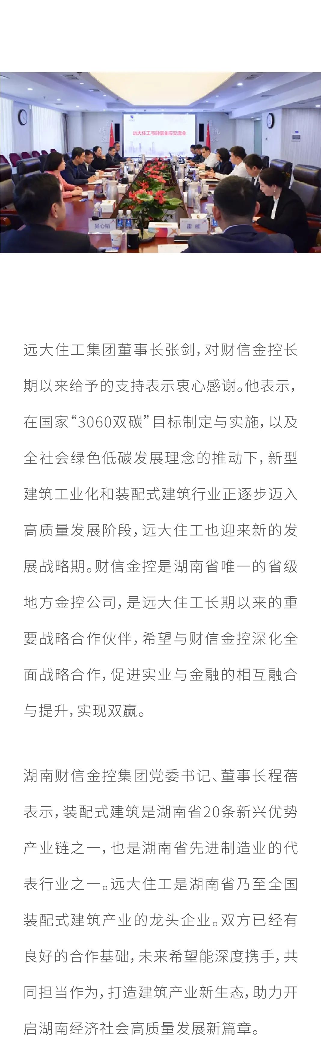 深入攜手,共建生態,推進金融與實業雙向賦能 遠大住工與財信金控舉行交流座談會
